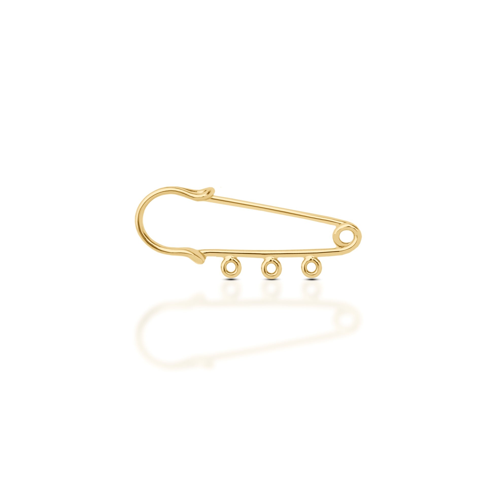 Sleek and symbolic, this solid 18K gold safety pin features three loops for adding charms or initials. A refined design blending elegance with meaning.