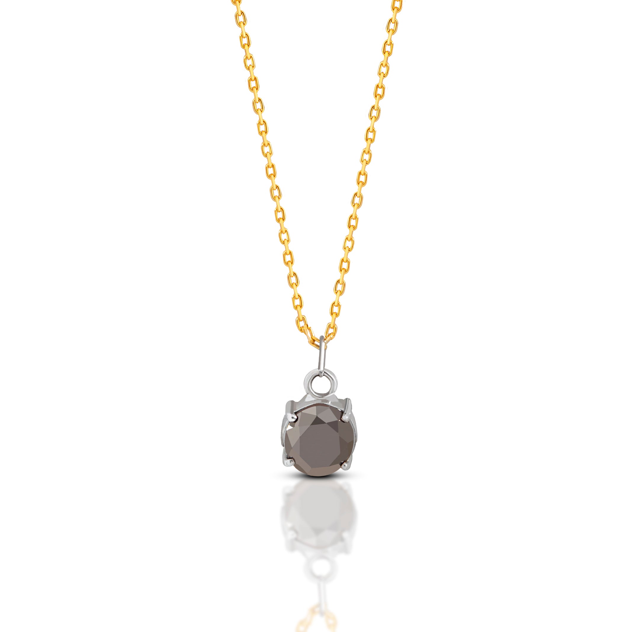 The piece features a striking black stone, set in a polished 18k white gold bezel. The pendant hangs from a delicate 18k gold chain, creating a classic and elegant accessory.