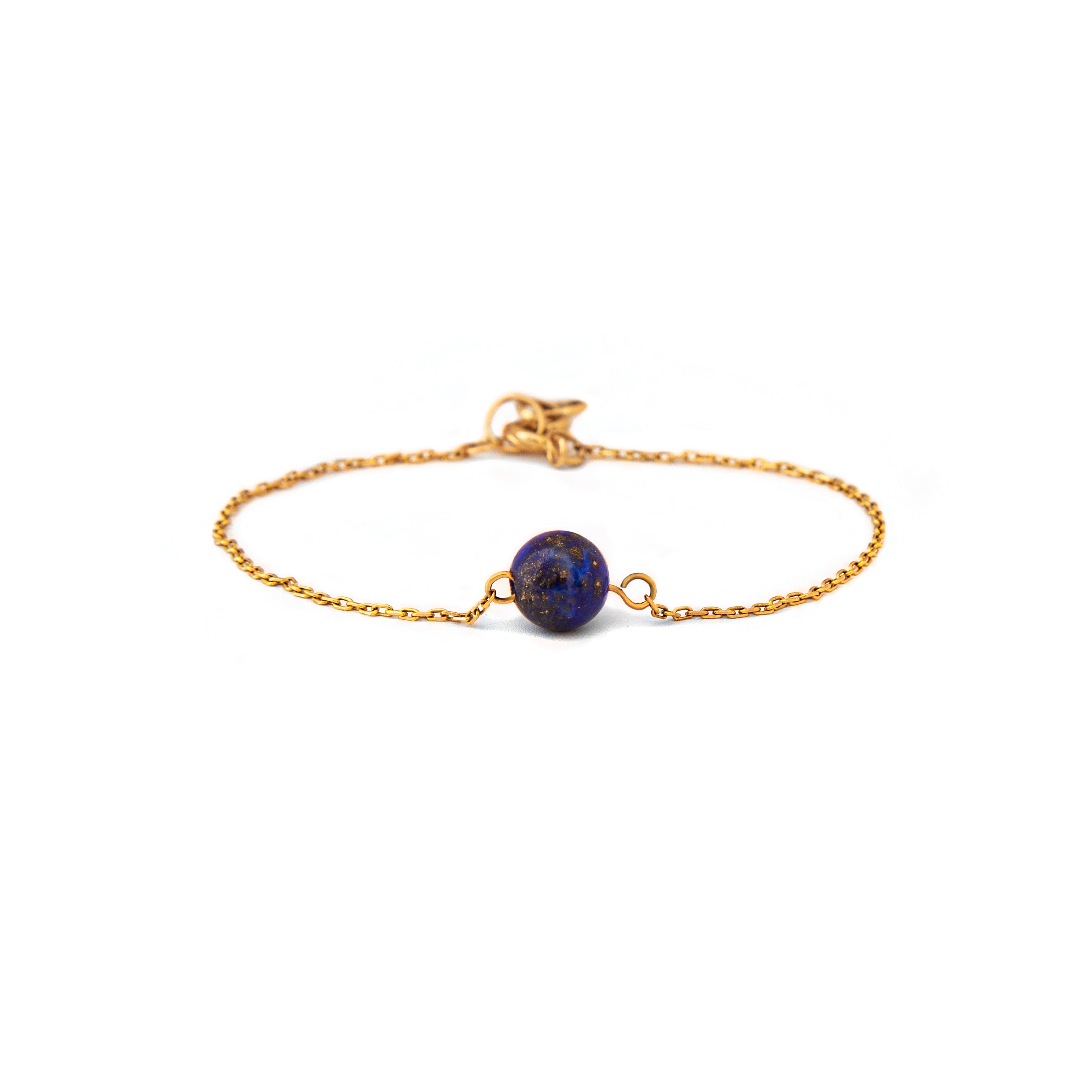 A bracelet with a single polished blue textured ball set on an 18K gold chain, offering a subtle statement with modern simplicity.