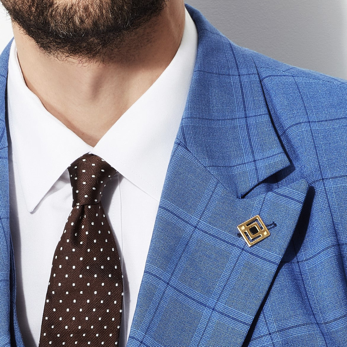 This sophisticated lapel pin from the Core Collection is crafted from sterling silver with a gold-plated finish. Inspired by Huwa's iconic logo, the hollow square design features a contrasting black stone at its center.