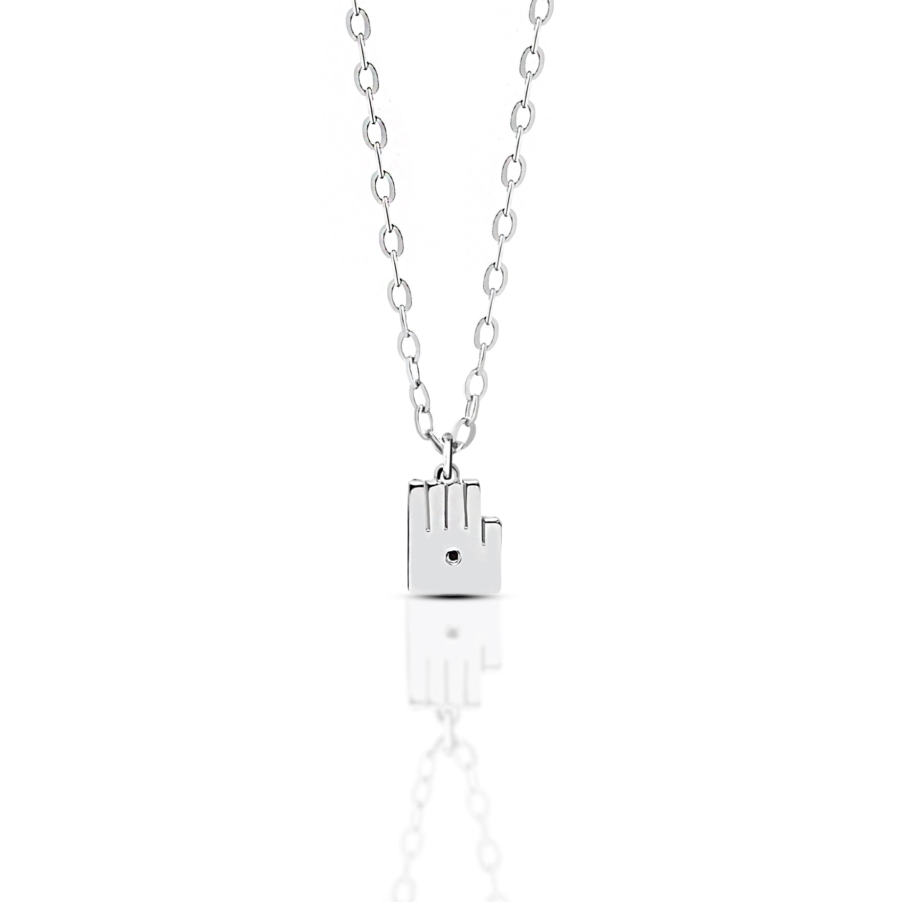 925 sterling silver chain and pendant plated in platinum set with a black diamond.