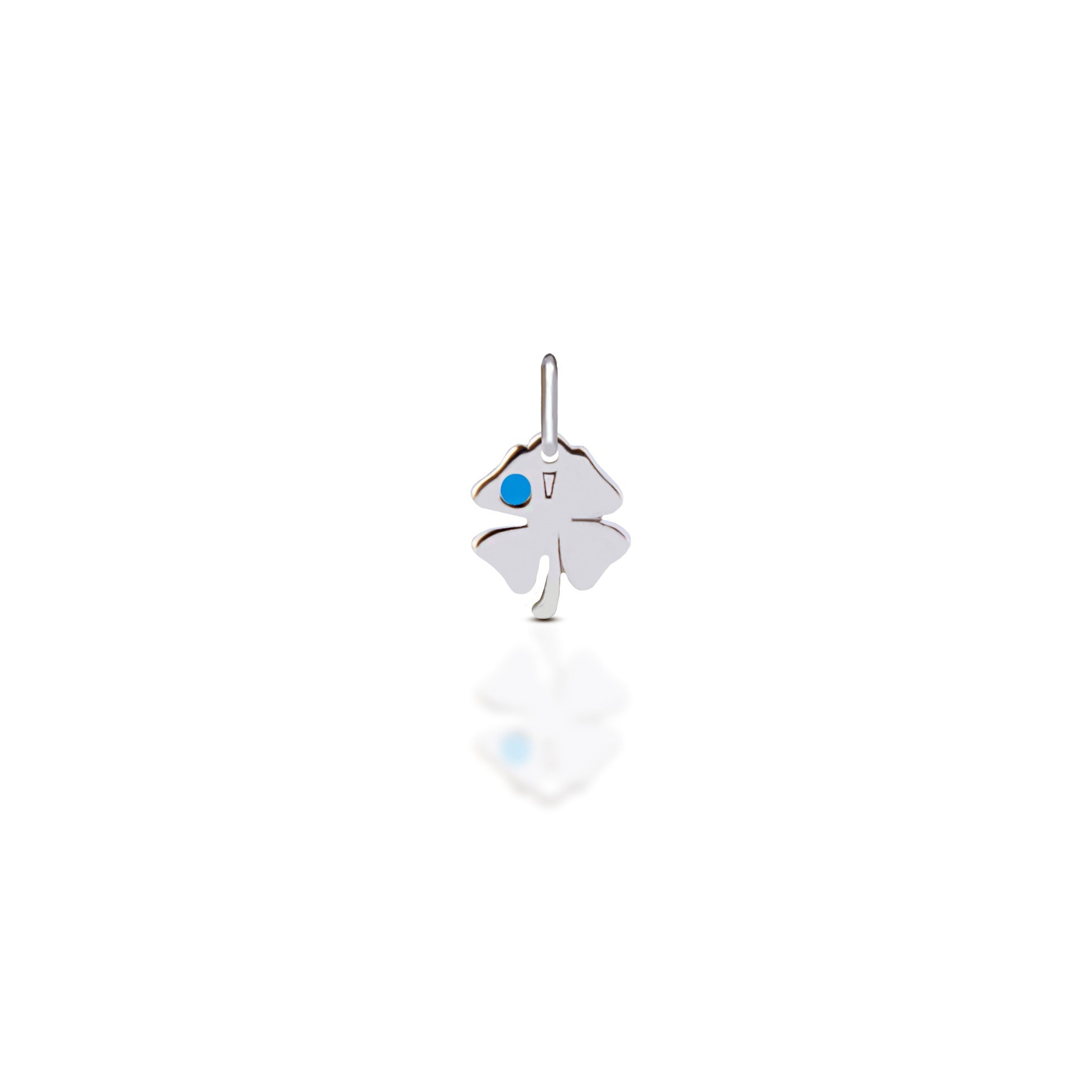 A charming piece from the Baby Huwa collection, this sterling silver four-leaf clover is a symbol of good fortune. A single blue accent at its center adds a splash of color to this classic keepsake.