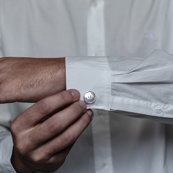 This classic pair of cufflinks is a testament to natural beauty and a refined, timeless aesthetic. Each cufflink features a smooth, iridescent natural pearl inlay set within a polished oval base. Crafted from sterling silver with an option of a platinum or gold-plated finish, this accessory adds a touch of pure and lasting style.