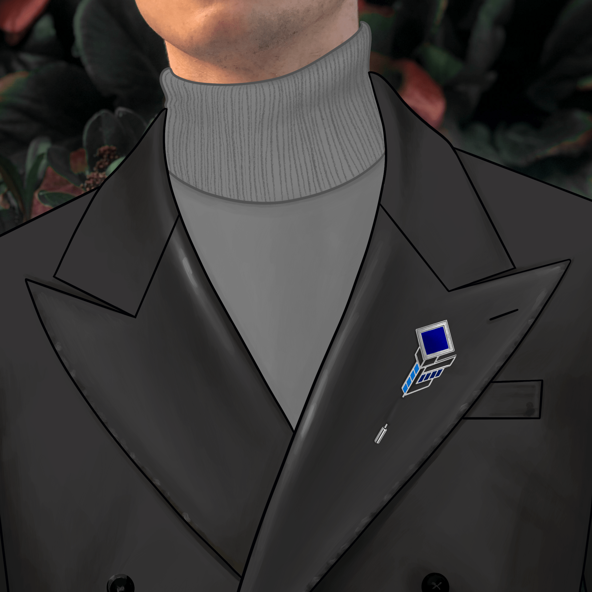 This architecturally inspired piece is a bold statement, capturing the geometric and sophisticated spirit of Art Deco. The Tilted Square lapel pin is made in sterling silver and plated in platinum, and is set with a blue stone and blue/navy enamel.