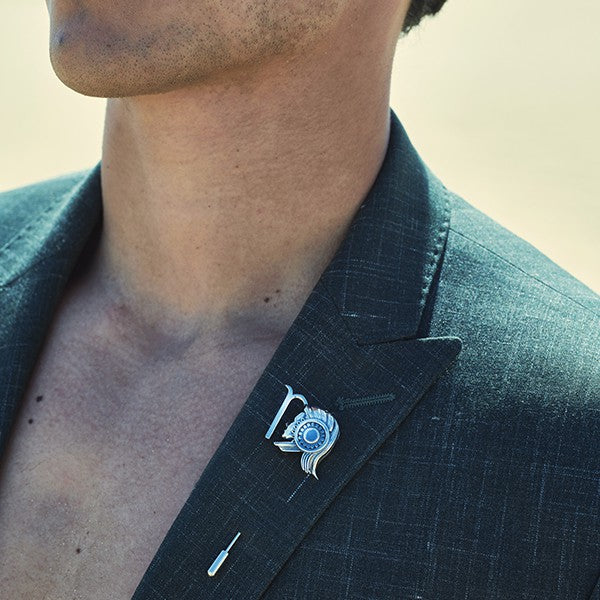 This lapel pin is a powerful symbol of elegance and intelligence, capturing the spirit of the Virgo zodiac sign. The piece features a meticulously crafted antique platinum-plated sterling silver design with the silhouette of the maiden.