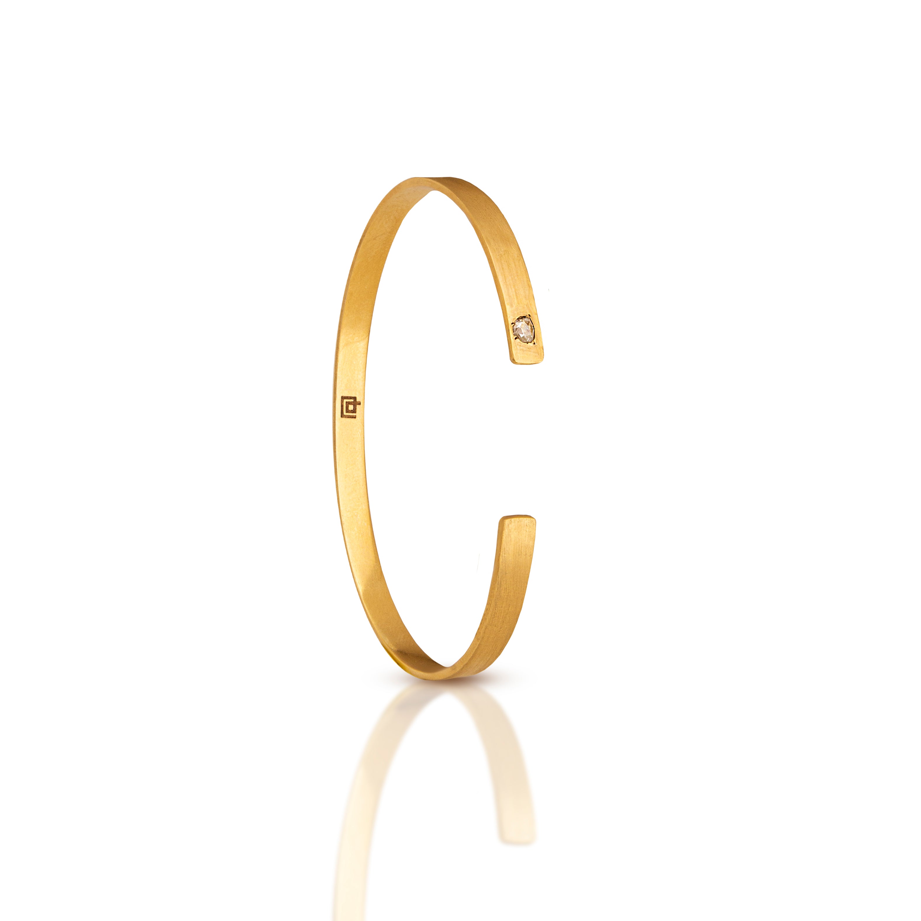 A refined open bangle crafted in solid 18K gold, accented with a single white diamond for understated brilliance. Minimal, modern, and timeless.